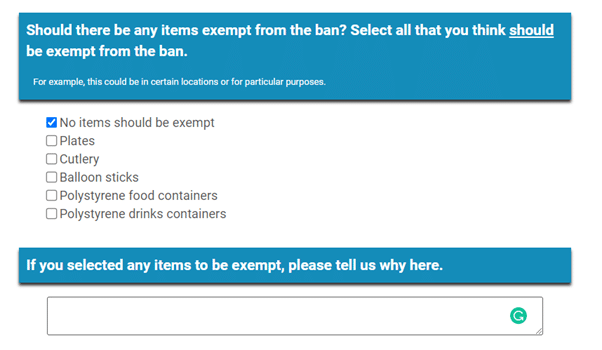 The items listed reflect the remaining items that have yet to be banned in England that are included under Article 5 of the EU Single-Use Plastic Directive.