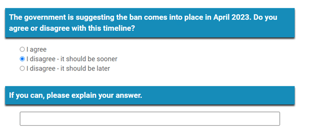 The government is suggesting the ban comes into place in April 2023. Do you agree or disagree with this timeline?